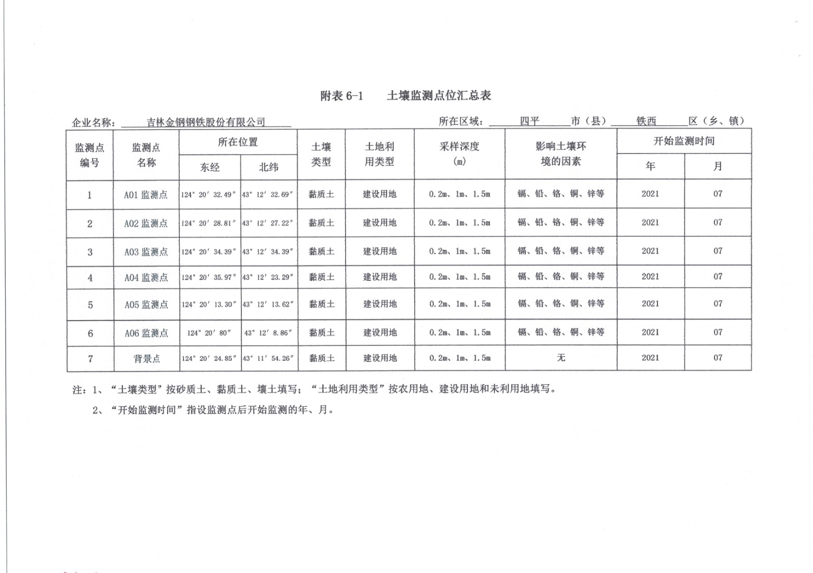 吉林金鋼鋼鐵股份有限公司2021年土壤污染自行監測方案