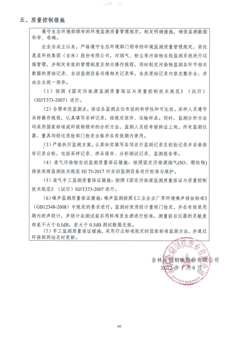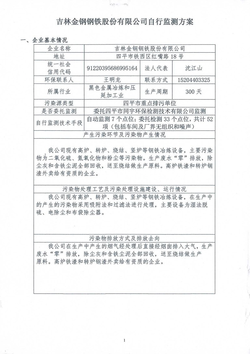 吉林金鋼鋼鐵股份有限公司2022年度自行監(jiān)測方案