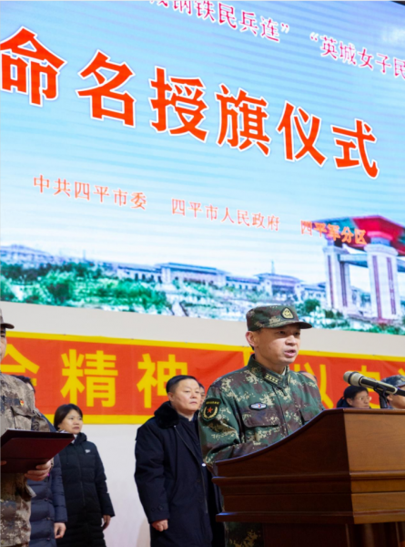 2021年12月24日上午,四平市舉行“馬仁興民兵連”“英城鋼鐵民兵連”“英城女子民兵排”命名授旗儀式。公司組建的“防風減災民兵連”被命名為“英城鋼鐵民兵連”。四平市委書記、四平軍分區第一書記郭靈計出席儀式并講話。市人大常委會黨組書記婁少華,市委常委、軍分區司令員張世強,副市長王有利,軍...